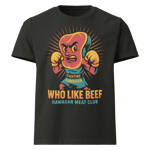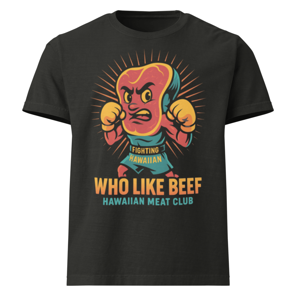 Whether you’re part of the Hawaiian Meat Club or just love to flex local pride, this shirt says it loud: “Who Like Beef?” - Inspired by Uncle Jimjim Humuniks
